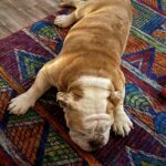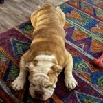 He’s a solid 70-pound Bulldog lovebug, and while he might accidentally knock over a small child in his excitement, he’s all heart: goofy, happy and just wants to be close to his people.
