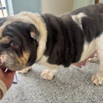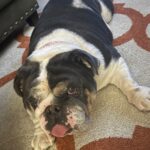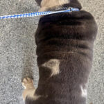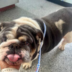 It’s important everyone knows I wasn’t an indoor Bulldog. I was a kennel Bulldog, so house rules are brand new to me. Please be patient. I’m still learning, and accidents might happen. My mama is Koko Lovebug. She’s much more confident than I am, but I’m working hard and learning how to walk on a leash today.