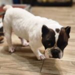 At night, she sleeps soundly next to the human bed and will happily go into her kennel when asked. She’s a big fan of Benebones and can entertain herself nicely with one. She’s mostly doing her business outside, with just a few kennel accidents along the way as she continues learning her routine.