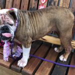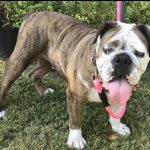5/8/18 Update: Another Tuesday finds me, Alice, at Mutt Puddle having a medicated bath. I am a regular there. I get there at 8:30 and get picked up at 4. Today was different, my foster mom hung around and took pictures so everyone could see me. I stand, lay, roll, kick, every Tuesday while the shampoo is magically making my skin better. I know what you’re thinking, you’re thinking “Really, cause it looks pretty bad?” But I am doing great! I have found a dog food that I will eat that does not make me itch. I have tried lot’s of dog food, and I have turned my nose up at most of it. But not any more. You can’t tell from the pic’s that my hair is growing back. slowly but surely. I joined rescue a long time ago, and so far no one has wanted to adopt me. I don’t really look like most of the bulldogs in rescue. I am not short, wide, and I don’t snore. I am taller, leaner, and pretty darn fit. I love to walk. I am looking for a walking family. I need a active family that will include me. I don’t need a family with other dogs because I love all the attention. Please send in a application for me, Alice, the bulldog that loves people to pieces!
