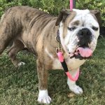 I am 100% potty trained, usually don’t get on furniture and basically everyone’s dream Bulldog! I am taller than the average Bulldog, which means when the weather cools off, I will be able to take long walks. I don’t chew on anything, not even toys that are mine usually. I really just watch TV, take medicated baths and wait for a family to find me!