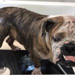 9/14/17 Update: Afternoon to all my bulldog friends, it’s me Alice checking in after my Spa Habitat Vacation! And I do mean, vacation! Yes, that’s right, I checked myself into a bulldog spa and the results have been amazing. I have been, scrubbed, exfoliated, picked, poked and prodded. I have had dental work, eye work, lady parts work, a manicure and a pedicure! This Alice has really been in Wonderland! Now, I am wondering what kind of family rescue has found for me. You might remember I joined rescue in a really sad state. I had gotten lost and no one came to find me. My hair was missing in places, my eyes were a mess, and I smelled really really bad. But underneath I was Alice, a lady that had the softness fur, the biggest smile, and the cutest personality …..once upon a time……… along time ago……. when I was a baby…….when someone loved me so. Well, now I want you to know I have found all the things I had lost while I was living on the street. I have found love. I have had such great care, such great food, such nice people doting over me telling me how beautiful I am. Now, I will still knock over a trash can when I see one, because that habit of looking for food their is still with me. but I am working on that. And I am a large lady. I am not tiny, petite, or dainty. I am tall, thick, and if I eat much more ice cream I will be considered “full figured.” I am stoic when I stand. I have the stance of a boxer, and the energy of a jack russell, and if you did my DNA it would come back. Alice is ….. Darn Near Amazing! So, this is me, Alice the beautiful bulldog. thank you so much for saving me !