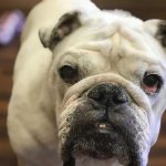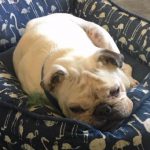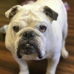 3/20/18 Update: I know I’m a little more seasoned than most folks looking to rescue want, but I am worth any adoption fee and more! It is definitely true because that is what my foster mom says and she knows a thing or two about Bulldogs. I have the standard care needed for a bulldog. My ears, my eyes need medication, and I was blessed with a deep tail pocket so that needs regular cleaning, too. I am very patient while all the cleaning and medicating is done. I have some vision problems, but I get around really well. I do have an issue with other things with fur as I don’t see the best and I don’t know if they are friend or foe. I love, love, love people!!!! I had a family for a long time, but then I ended up at a shelter. I’m okay hanging out here at my foster home, but I would really like my own family again, fur free, of course. I’m up for a nice couch, a lap to lay my head in, and Netflix!!! Who is down for that with me??? Handsome Bevo II