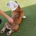 I’m about 5 years old and I have a big, beautiful head and great big feet. I also have a big heart! I’m very playful and love being outside. I walk on my leash like a pro. I’m an all around great Bulldog!