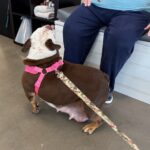 6/7/25 INTRODUCTION: Please welcome Olive Oyl to our rescue family. She’s about 2 years old and weighs 40 pounds, but this little Bulldog has already carried a heavy burden—literally and figuratively.