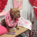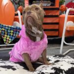 From the foster momma: Sugarplum Figgy came into heat, so she’s trying some new garb. She has the best personality and is just perfect! She loves everyone she meets and will fit into almost any type of family.