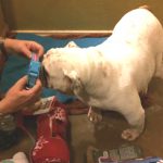 12/11/17 Update: Trudy was so excited to get her very own bag of Christmas goodies with her name on it! She loved everything, especially her Hello Kitty collar and leash! It was HERS and no one else’s and she couldn’t wait to wear it. It made our hearts so happy to see her so excited and surrounded by blankets and treats, Benebones and stuffies that were just for Trudy! Her own stash…… and Lone Star Bulldog Club Rescue and our supporters made it possible. Thank you to all our contributors whose big hearts made it possible for our fosters to have such a wonderful Christmas! We appreciate you and Trudy sends Christmas kisses!
