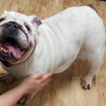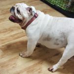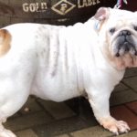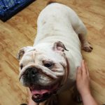 “Hello, my name is Trudy. Some people call me “Trainwreck” Trudy. You will know why shortly. Do I have a story to tell! I have been passed from person-to-person so many times over the last few years, I have lost count of how many owners I’ve had. You would think that someone would have kept me, or at least taken care of me! But that all changed a few days ago. For some reason, the police came to the house where I was staying in the garage. They knew a Bulldog should not be living like that. So they called another police officer who owns and loves Bulldogs and she came and talked to my owner. At least this owner gave me to the right person! The officer took me to a clinic in the middle of the night. I have been there for three days and have been checked out from head-to-toe. I can’t believe how nice everyone was and how many times they said they loved me. Makes me want to cry! I did not know there were people like this.