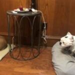 I crave foster dad’s attention and shadow his every move, especially if he ambles toward the kitchen. He might need my clean up services if any food drops. Methinks he intentionally drops meat bits my way, but we keep such rendezvous on the sly.
