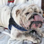 2/26/18 Update: I am happy to finally have a day of sunshine where I could get Forrest outside to get some new photos. I am still working diligently to get Forrest’s itchy skin issues under control. Poor guy just itches all of the time. I don’t know if it is the warm weather, or the fact he had another skin infection. but his coat is coming out in handfuls. He doesn’t seem to mind the fact that I have increased his baths to 3 times a week. He rather likes the wonderful massage and scrubbing and does the Bulldog version of purring in the bath tub.