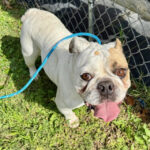 We’re told she had one litter of puppies before her breeder decided not to breed her again. After that, she was given to a family who promised to love her forever, but they didn’t. Instead, they let her go, believing that releasing a Bulldog out in the country was somehow acceptable.