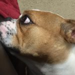8/1/16 Update: Mona Lisa has been getting along very well with our two bullies, and has recently started to show her playful side. Her manners are improving greatly, and is doing so much better on her house training. She absolutely loves to be around us at every moment. One of her favorite things to do is take a nap on our lap. We did finally hear her actively bark… not at the doorbell or the vacuum, but at the neighbor kids jumping on a trampoline. Other than that, she is VERY quiet. Mona Lisa is an absolute delight to have around the house. She has so much love to give and is ready to meet her furever family!